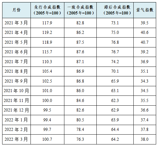 指數(shù)監(jiān)測模型結(jié)果顯示,2022年3月份,中國銅產(chǎn)業(yè)月度景氣指數(shù)為38.0,較上月上升0.2,位于“正常”區(qū)間運行;先行合成指數(shù)為100.7,較上月上升1.0。近13個月中國銅產(chǎn)業(yè)月度景氣指數(shù)見表1。表1 2021年3月至2022年3月中國銅產(chǎn)業(yè)月度景氣指...